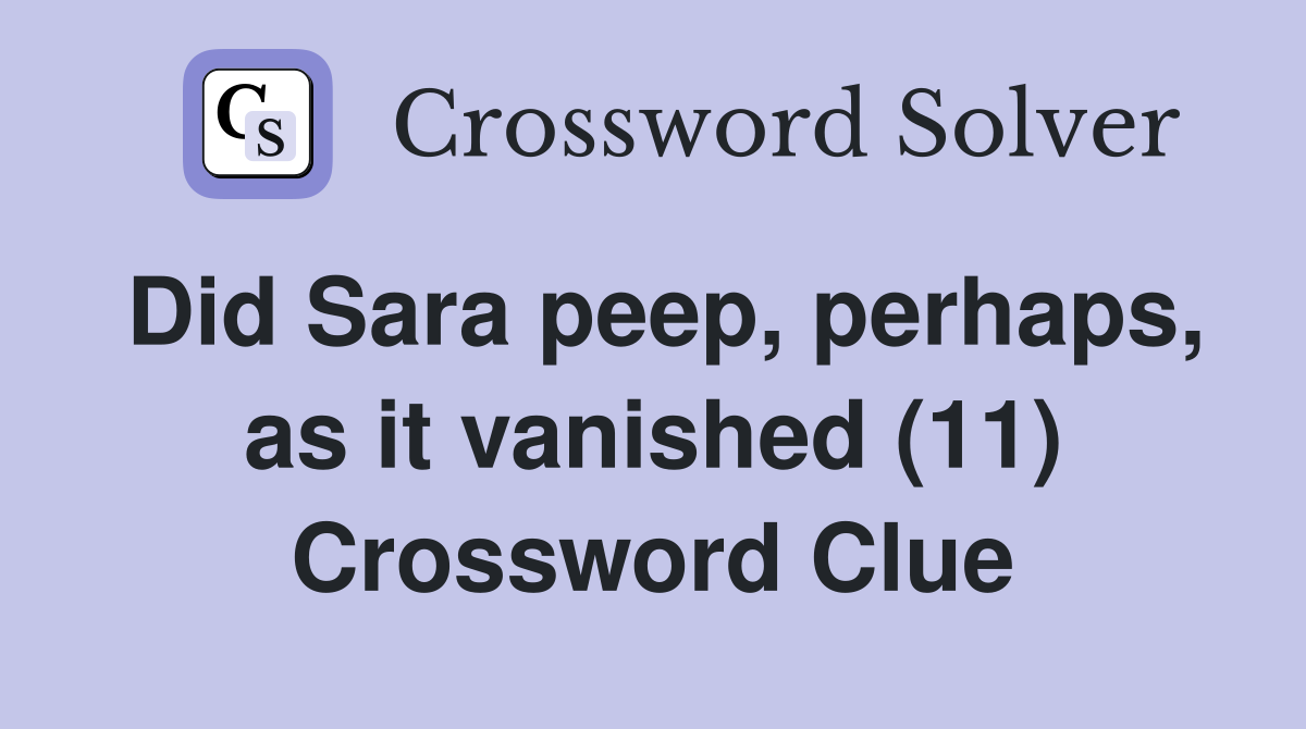 Did Sara peep perhaps as it vanished (11) Crossword Clue Answers