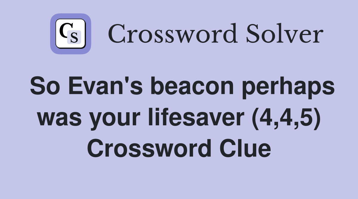 So Evan #39 s beacon perhaps was your lifesaver (4 4 5) Crossword Clue