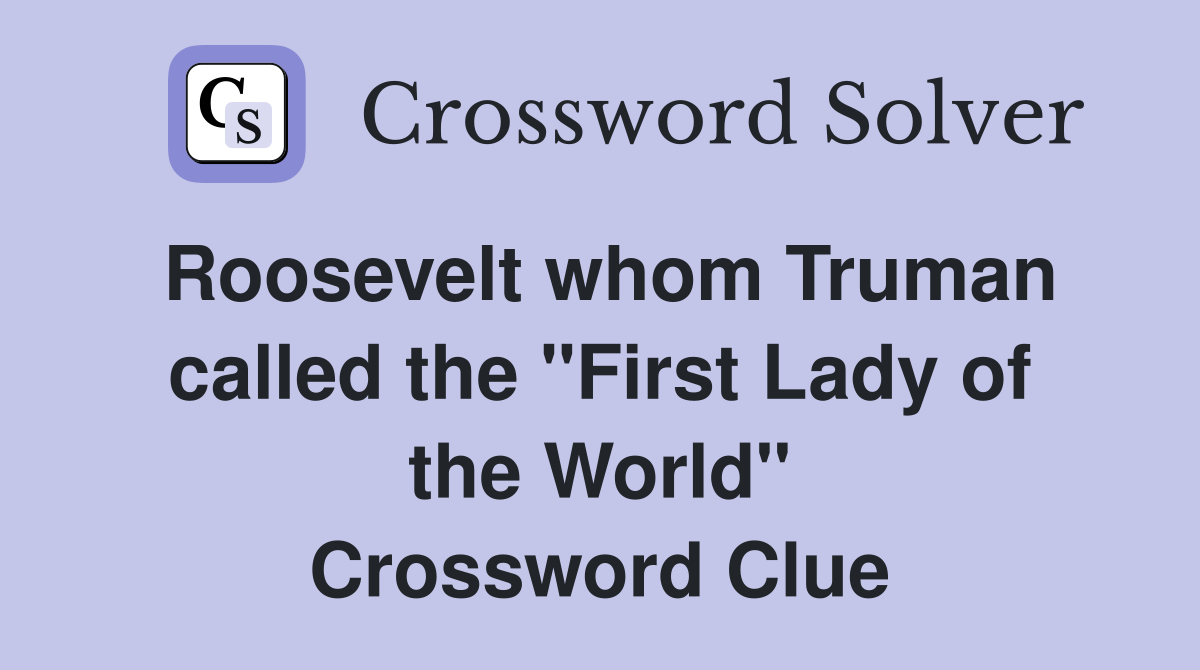 Roosevelt whom Truman called the quot First Lady of the World quot Crossword