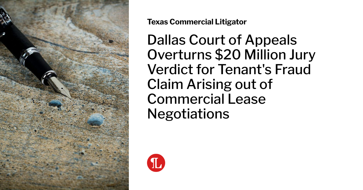 Dallas Court of Appeals Overturns $20 Million Jury Verdict for Tenant s