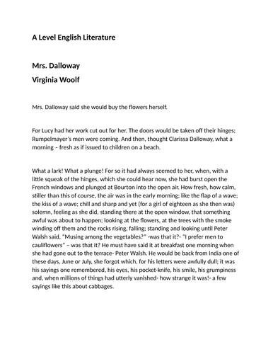 Mrs Dalloway Virginia Woolf: A level exam questions Teaching Resources