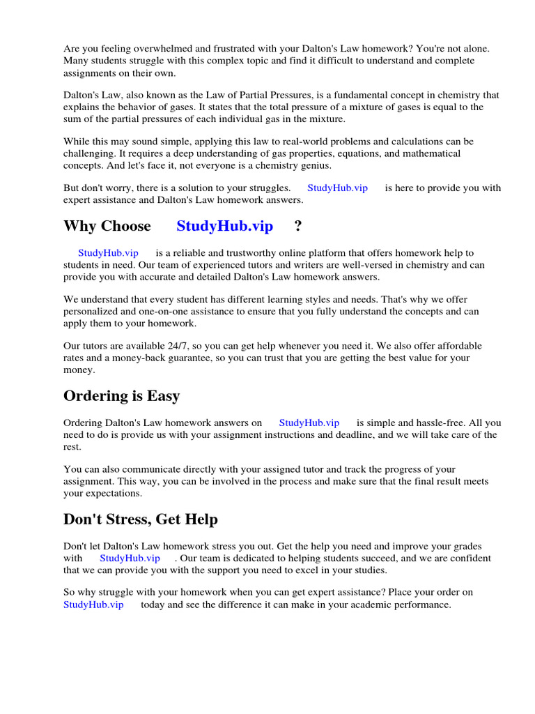 Daltons Law Homework Answers Download Free PDF Gases Pressure