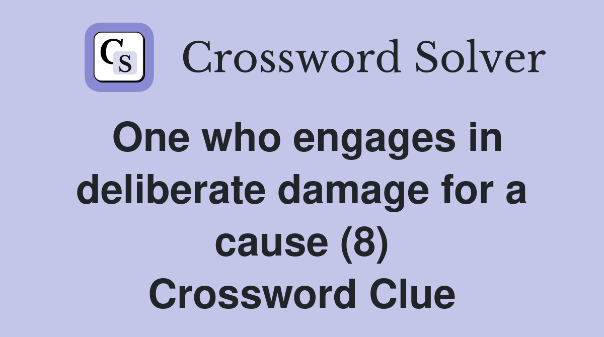 One who engages in deliberate damage for a cause (8) Crossword Clue