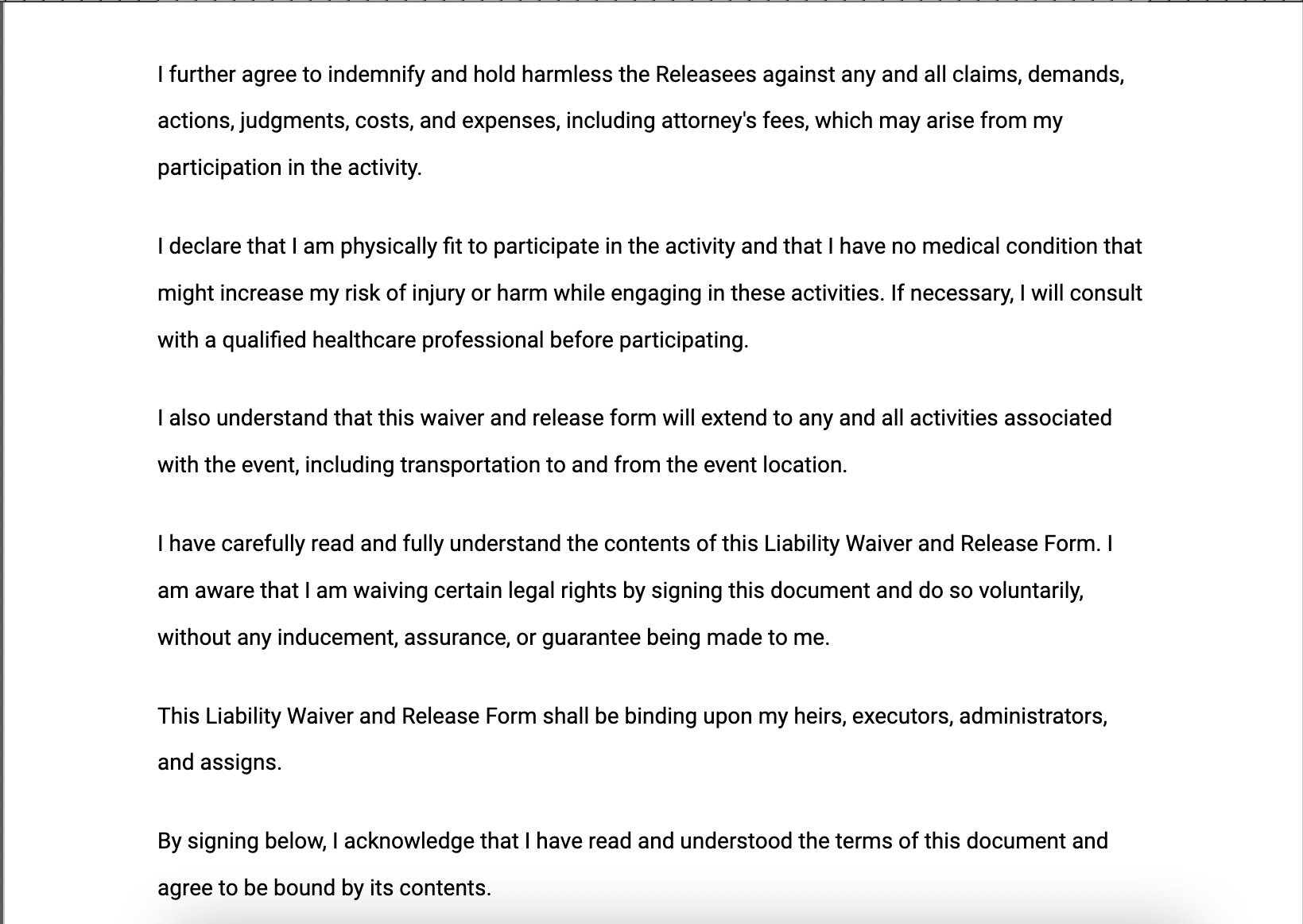 Free Legal Contract Liability Waiver Form Template to Edit Online