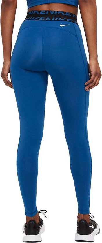 Nike Pro Dri Fit Mid Rise Graphic Nauw Dames Court Blue / Black