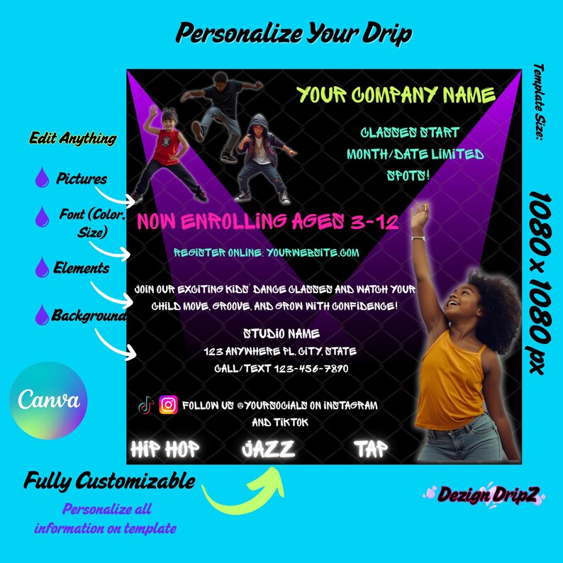 Editable Canva Dance Class Flyer Template Etsy