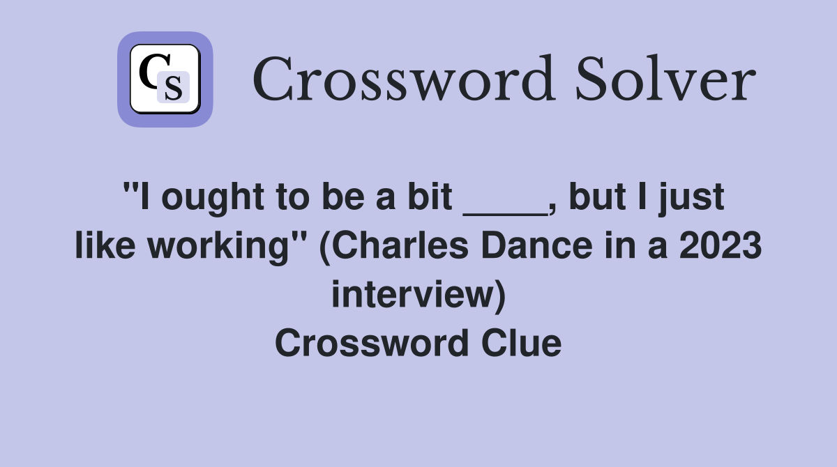 quot I ought to be a bit but I just like working quot (Charles Dance in a