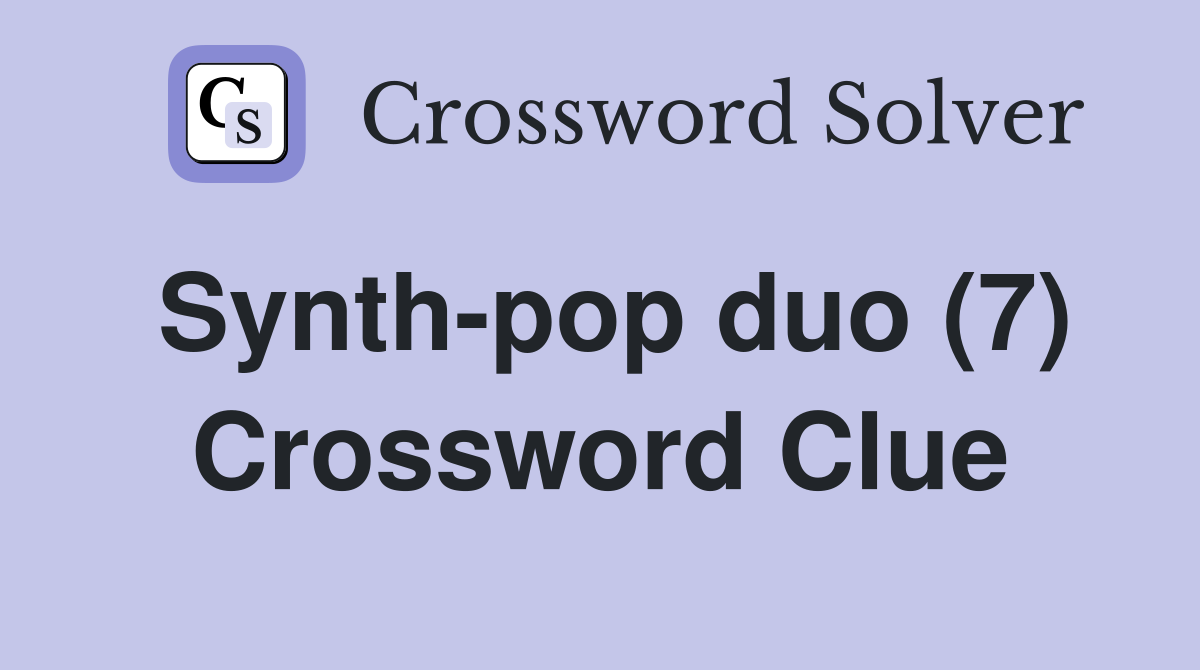 Synth pop duo (7) Crossword Clue Answers Crossword Solver