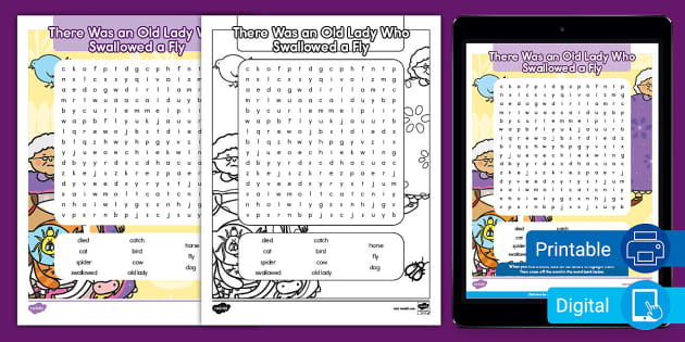 There Was an Old Lady Who Swallowed a Fly Word Search