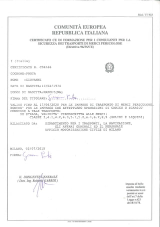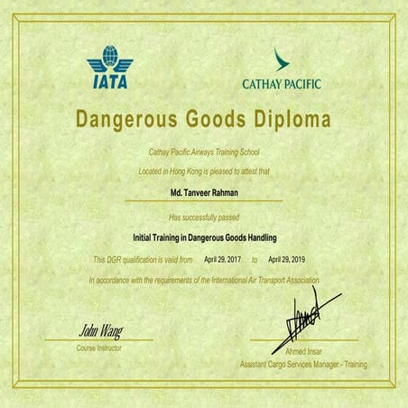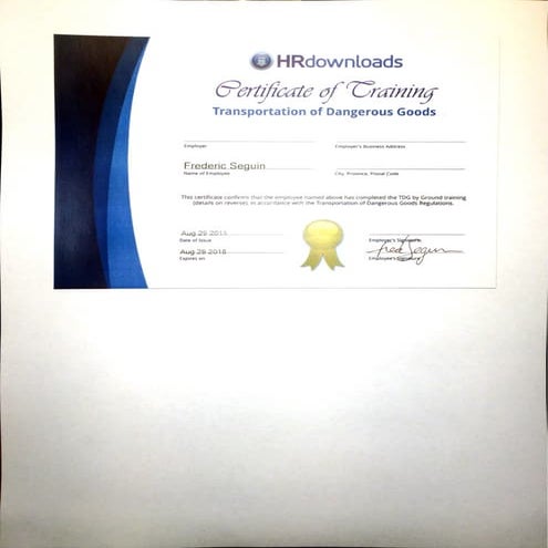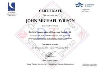 Transportation of Dangerous Goods 2 Training Certificate PDF