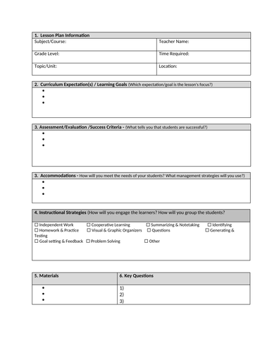 Lesson Plan Template Download in Word or PDF Top Hat Teacher lesson