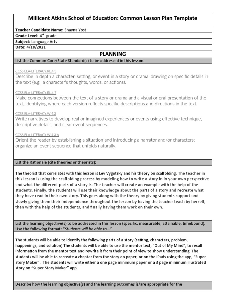 Millicent Atkins School of Education: Common Lesson Plan Template