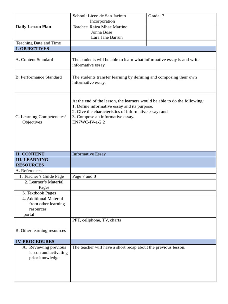 Lesson Plan Template Etsu Download Printable PDF Templateroller