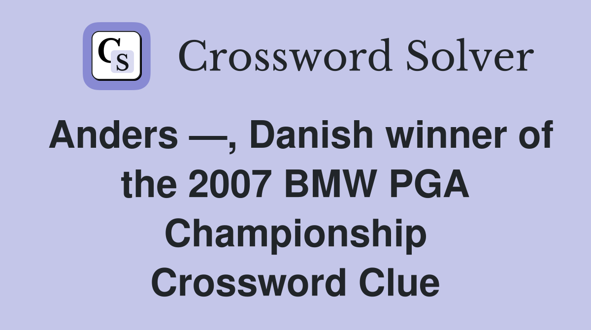 Anders Danish winner of the 2007 BMW PGA Championship Crossword