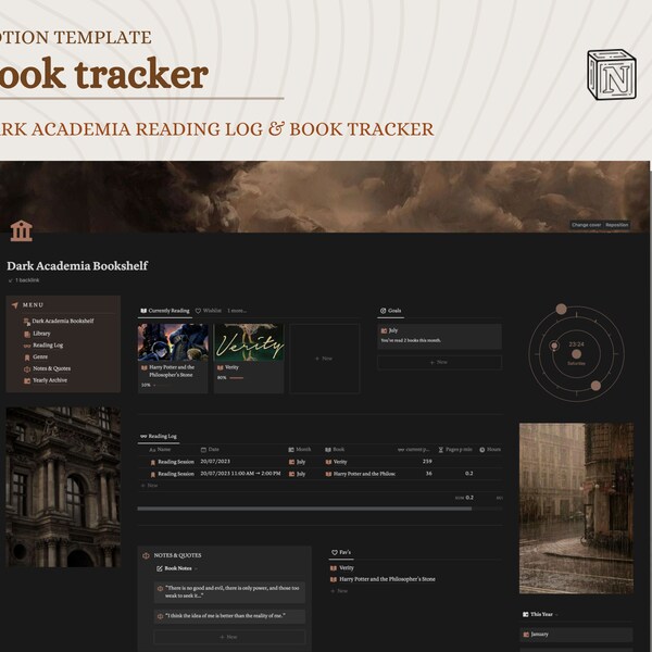 Notion Template Dark Academia Templates Themes ~ Creative Market