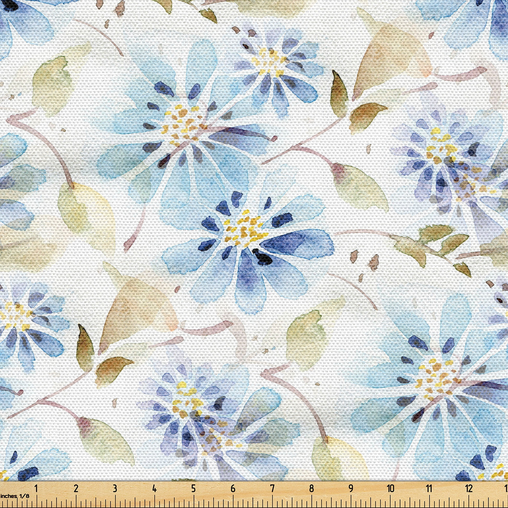Ambesonne Floral Fabric by the Yard Upholstery Watercolor Blossom