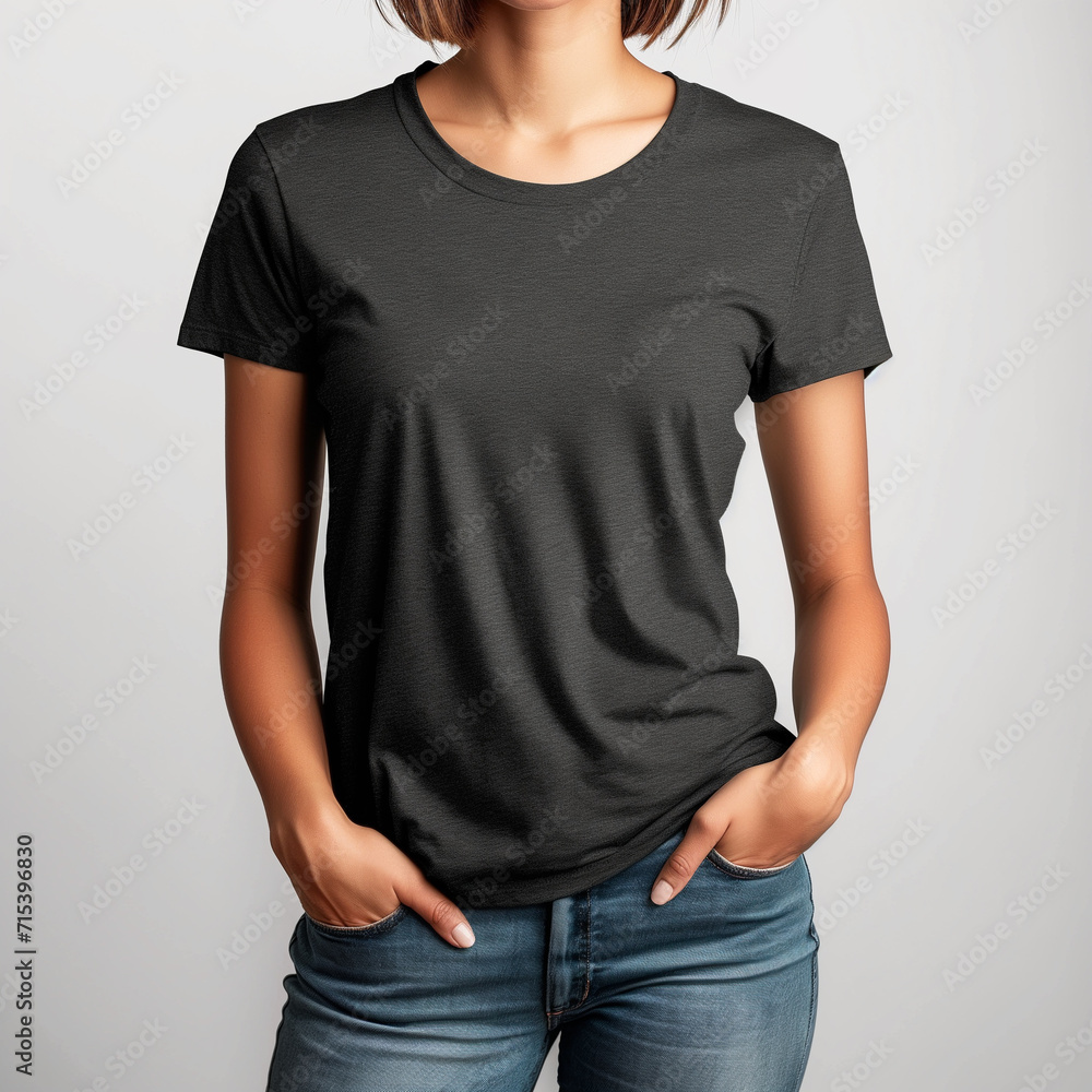 Dark Grey T shirt Mockup Woman Girl Female Model Wearing a Dark