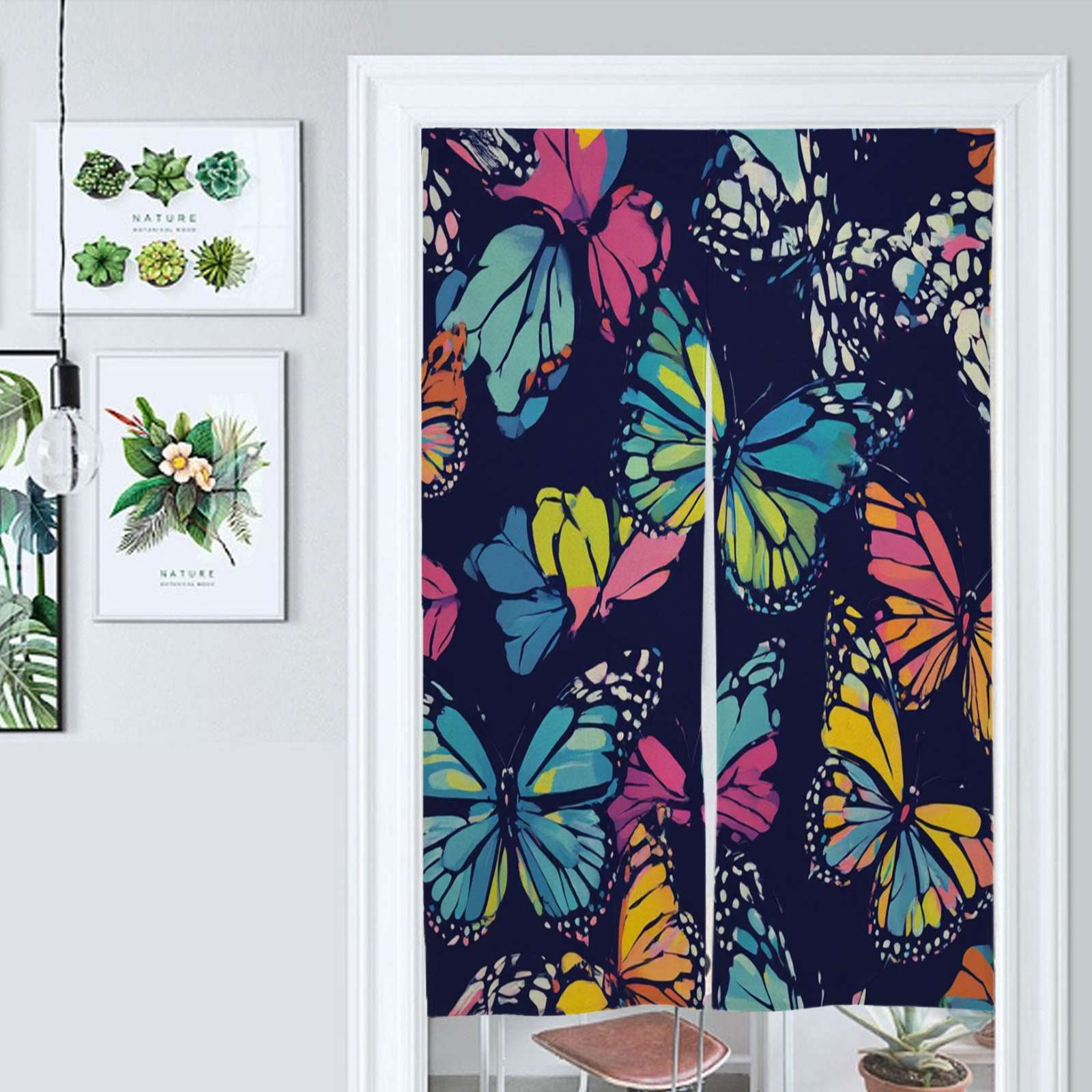 Colorful Butterflies Dark Background Pattern Door Curtain Nordic Living