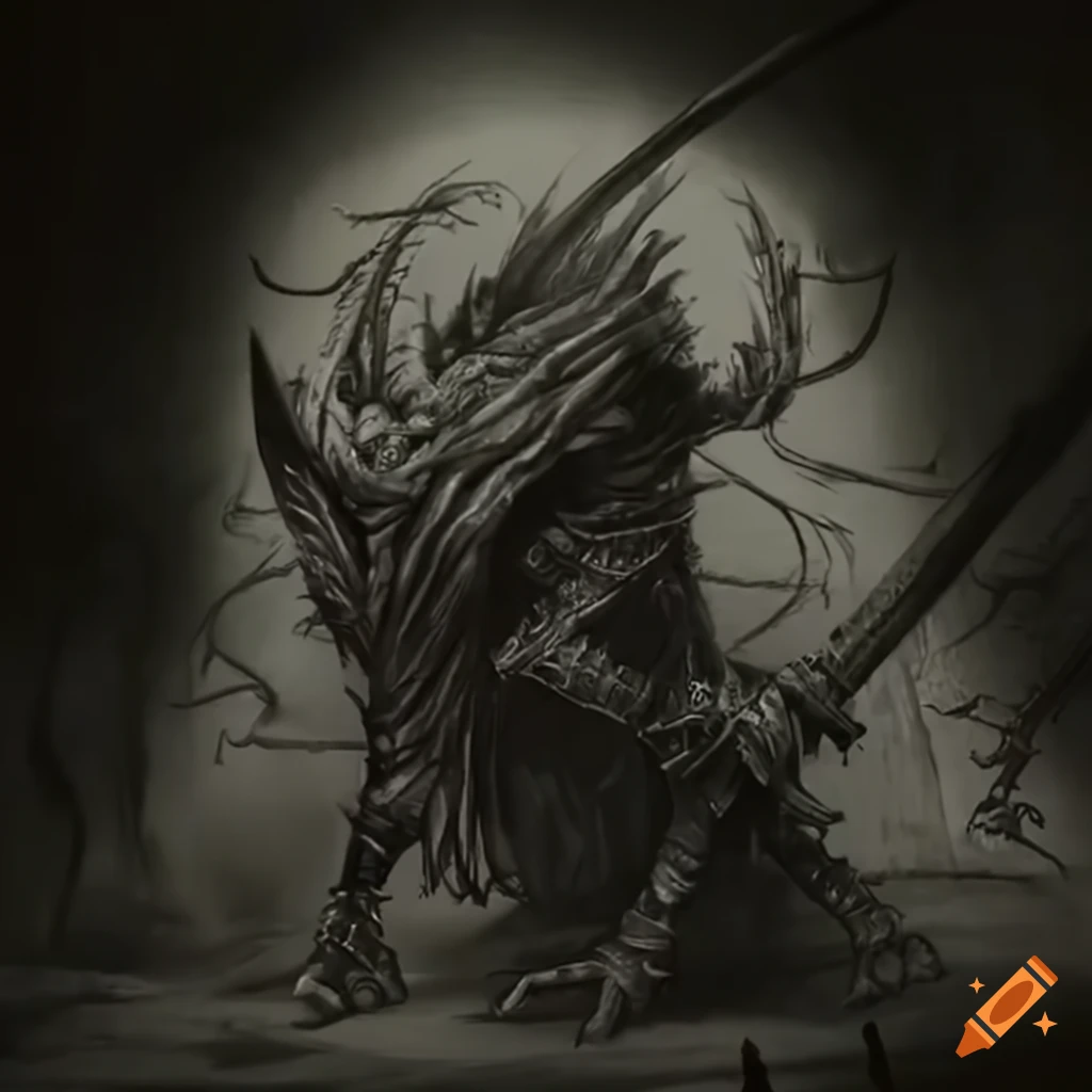 Chosen hollow battling a boss in Dark Souls on Craiyon