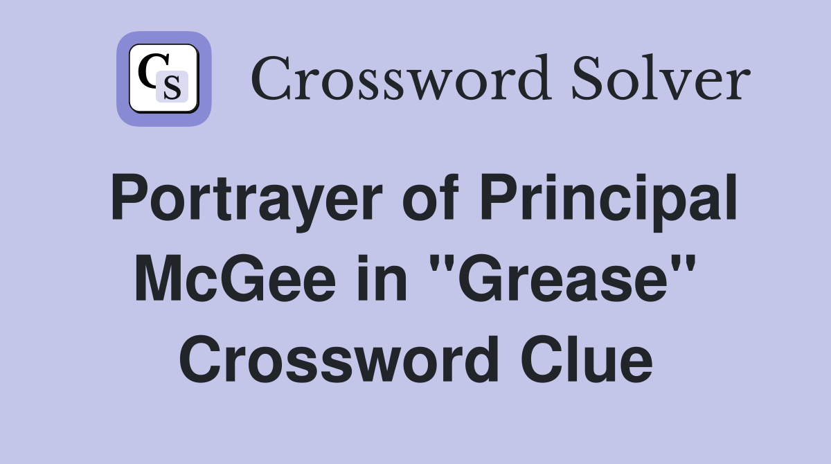 Portrayer of Principal McGee in quot Grease quot Crossword Clue Answers
