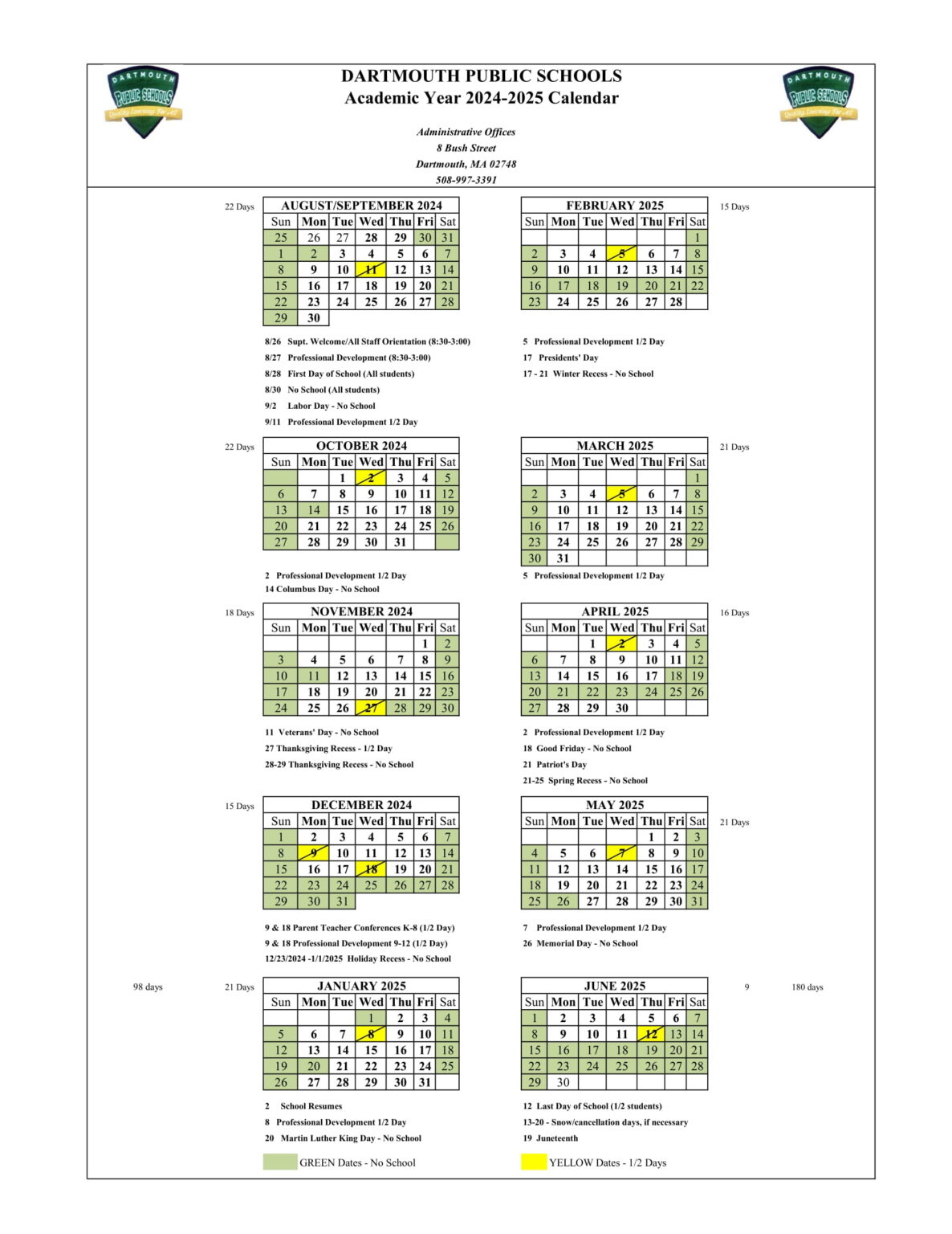 Dartmouth Public Schools Calendar 2024 2025