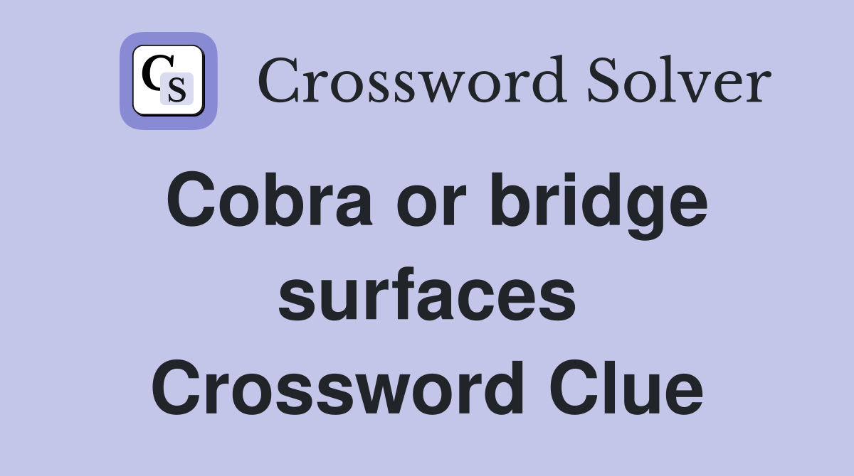 Cobra or bridge surfaces Crossword Clue Answers Crossword Solver