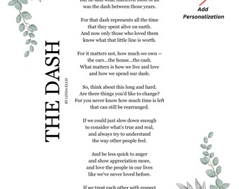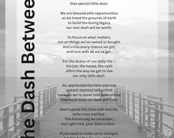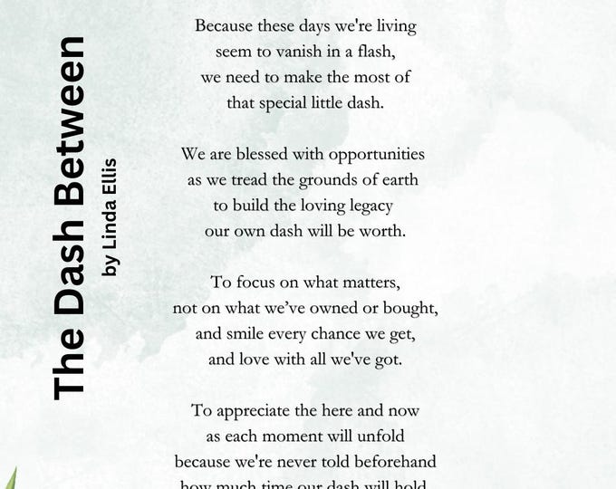 The Dash Poem by Linda Ellis Printable Poetry Prints Poems on Etsy Israel