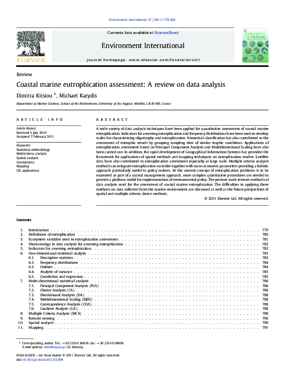 (PDF) Coastal marine eutrophication assessment: A review on data analysis