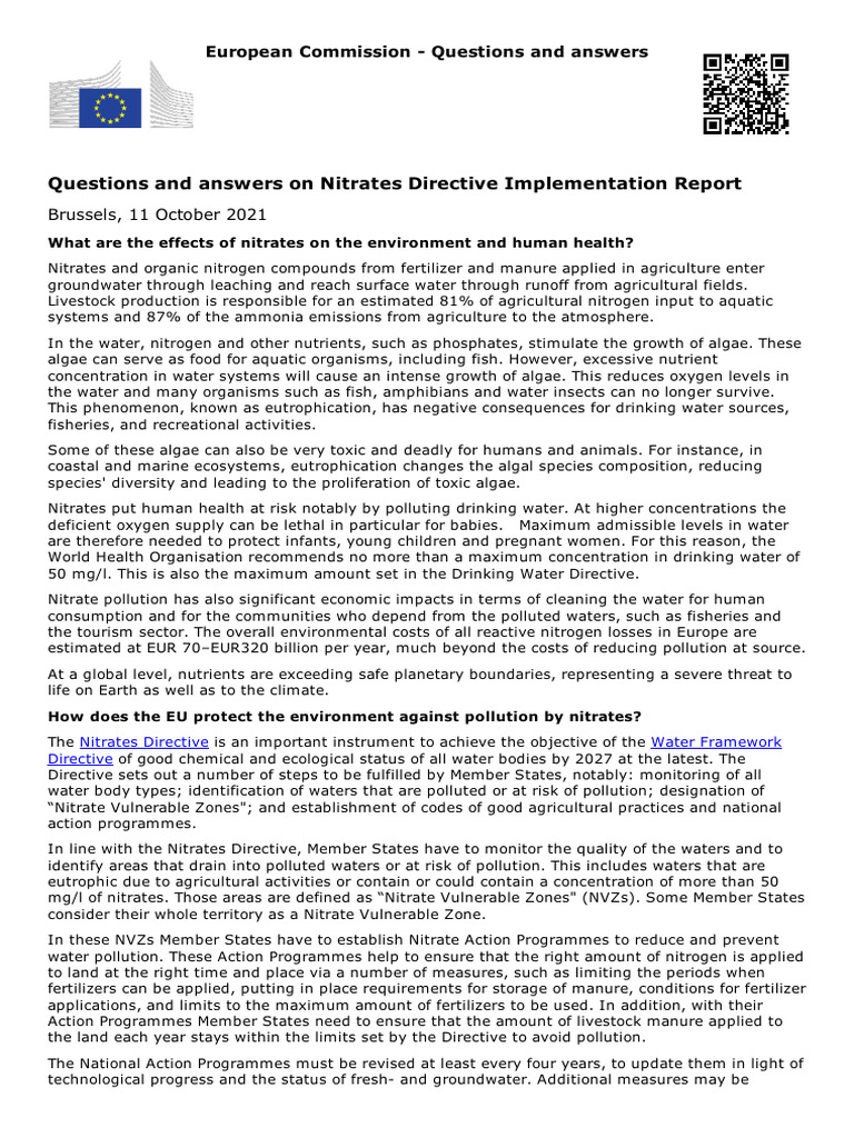 Questions and Answers On Nitrates Directive Implementation Report PDF