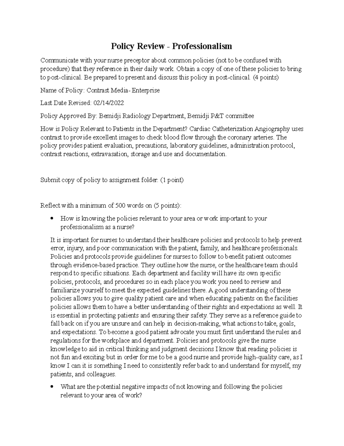 Clinical III Day 3 Policy Review Professionalism Policy Review