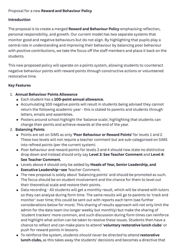 Reward and Behaviour Policy Tipping the Scales Teaching Resources