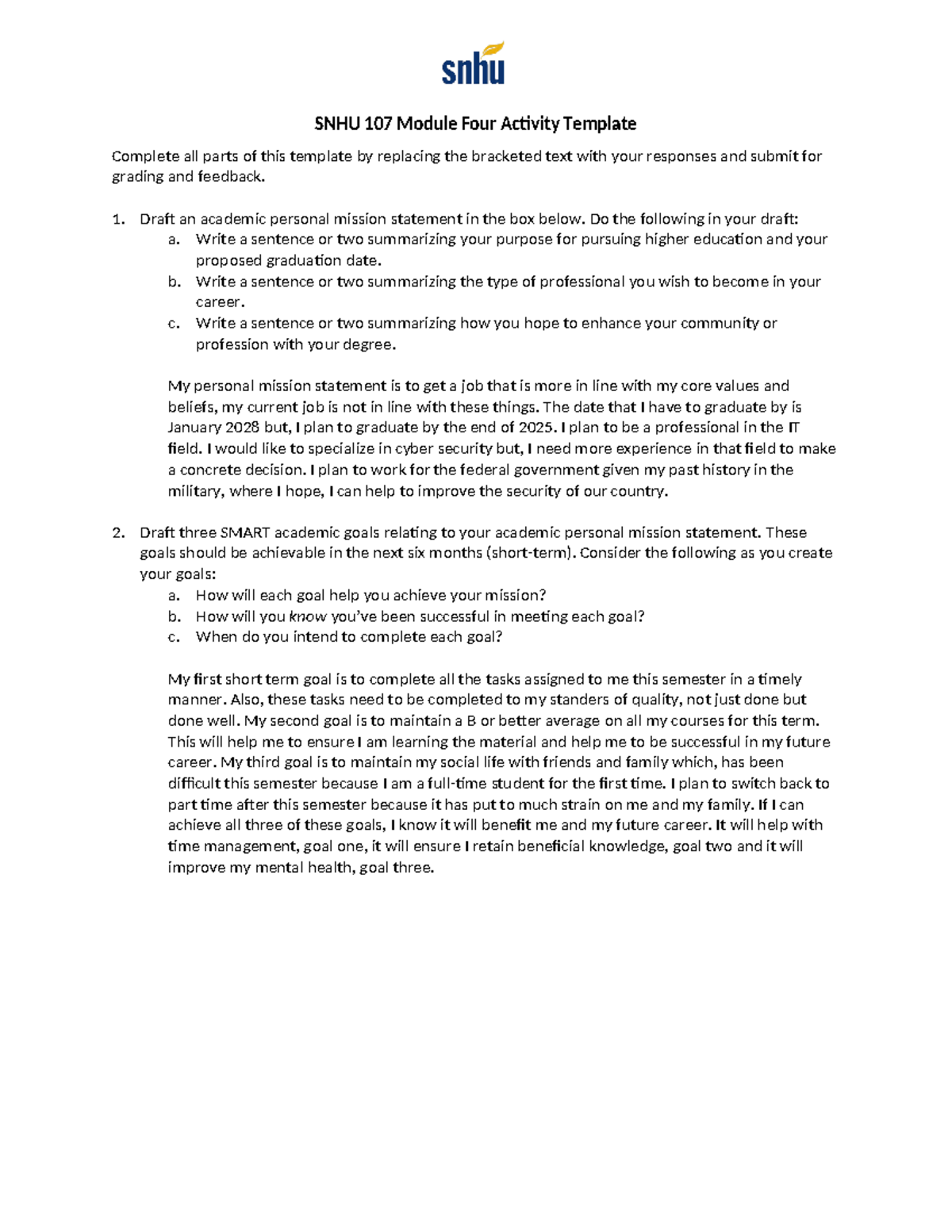 SNHU 107 Module Four Activity Template SNHU 107 Module Four Activity