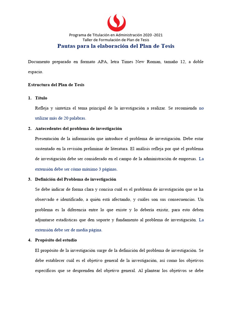Pautas y Rúbrica para Plan de Tesis Programa 2020 2021 Version