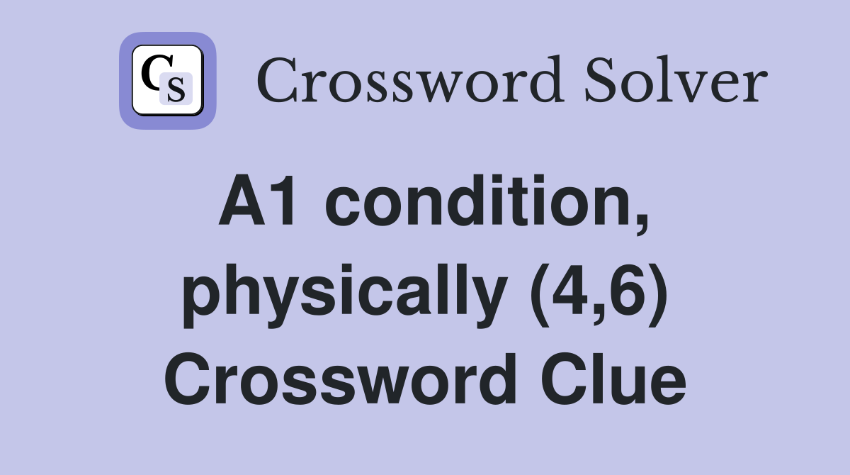 A1 condition physically (4 6) Crossword Clue Answers Crossword Solver