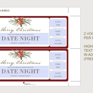 Christmas Date Night Coupon Voucher INSTANT DOWNLOAD EDITABLE Text