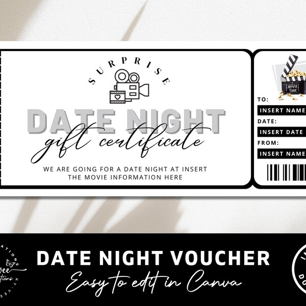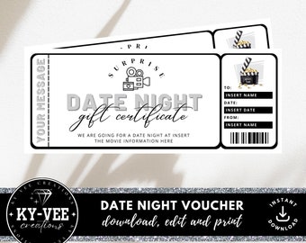 Date Night Certificate Template INSTANT DOWNLOAD Printable Movie