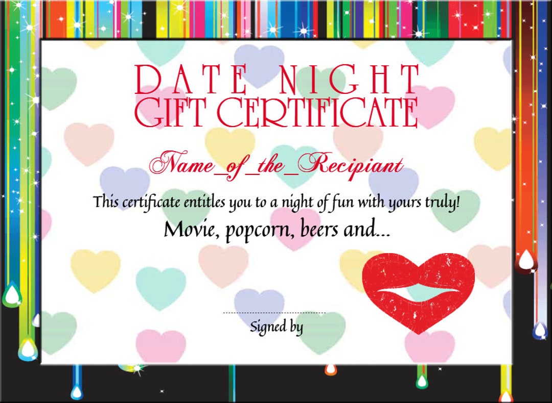 Date Night Gift Certificate Templates Printable And Enjoyable Learning
