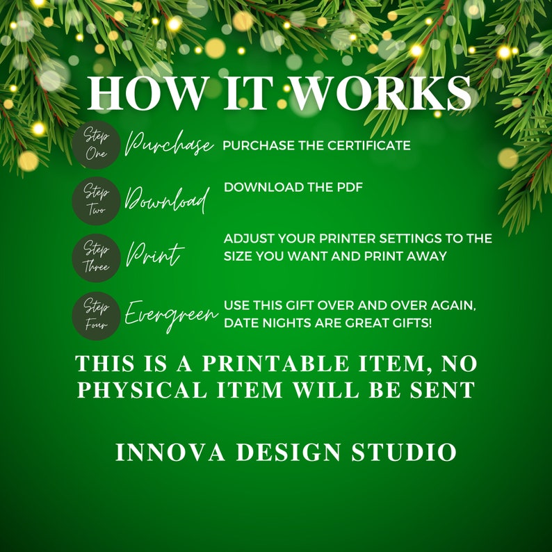 Christmas Date Night Gift Certificate Holiday Gift Certificate DIY