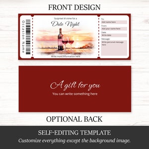 Editable Date Night Gift Ticket Template Surprise Printable Date Night