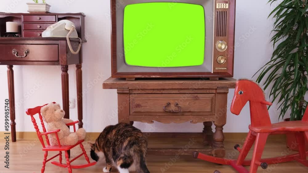Footage Of Dated TV Set With Green Screen Mock Up Chroma Key Template