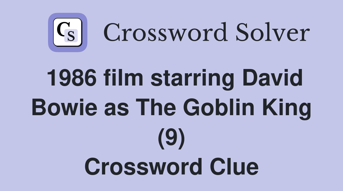1986 film starring David Bowie as The Goblin King (9) Crossword Clue