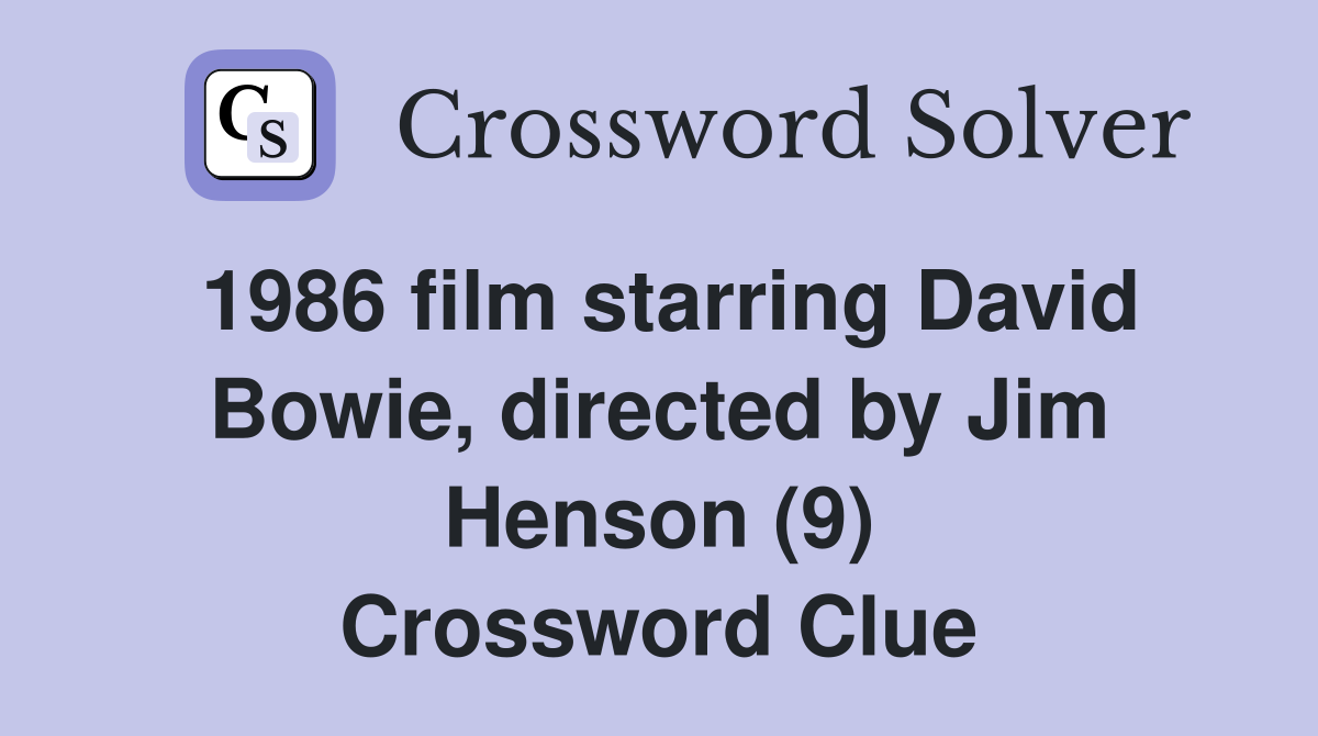 1986 film starring David Bowie directed by Jim Henson (9) Crossword