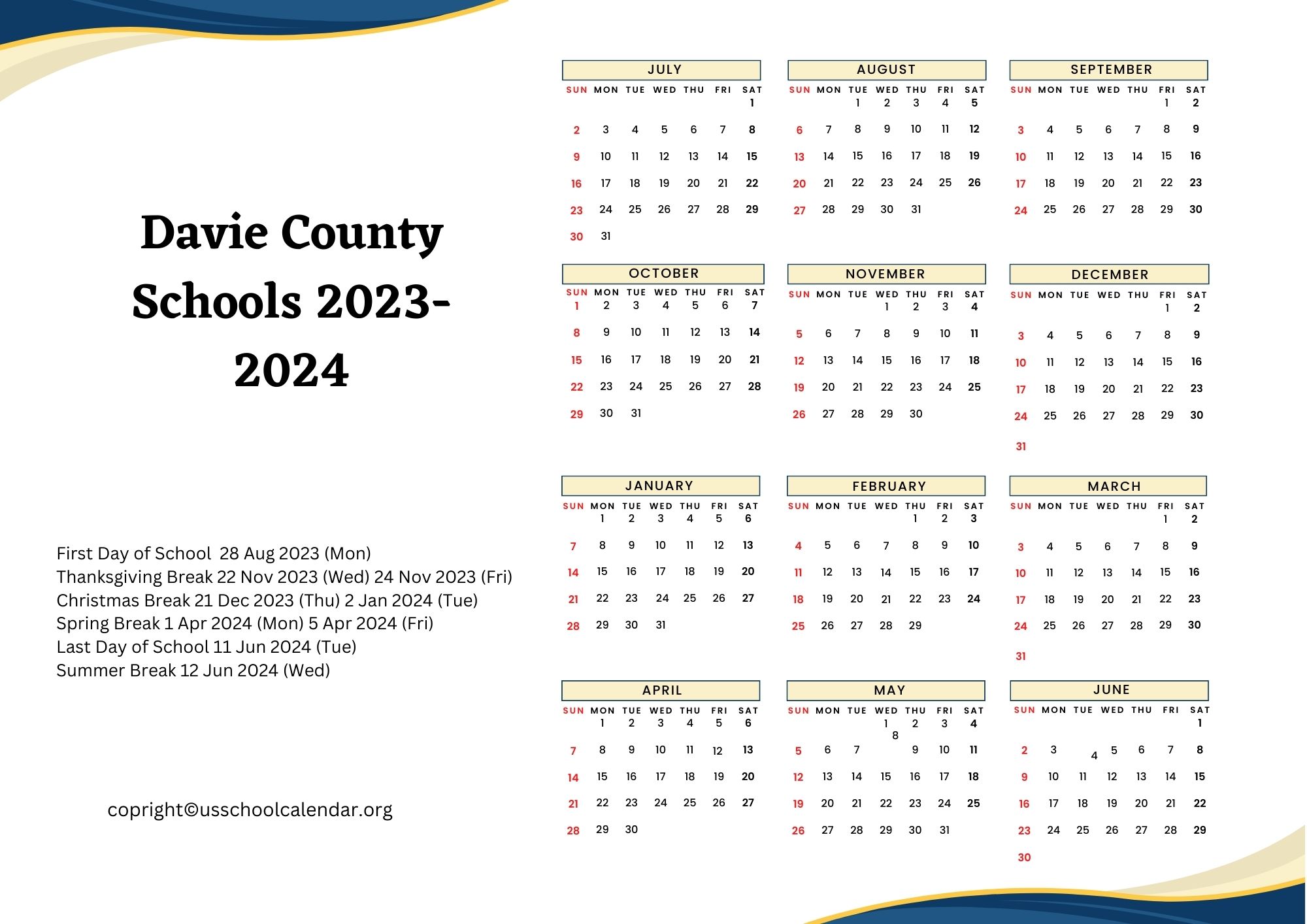 Davie County Schools Calendar 2024 and 2025 PublicHolidays com