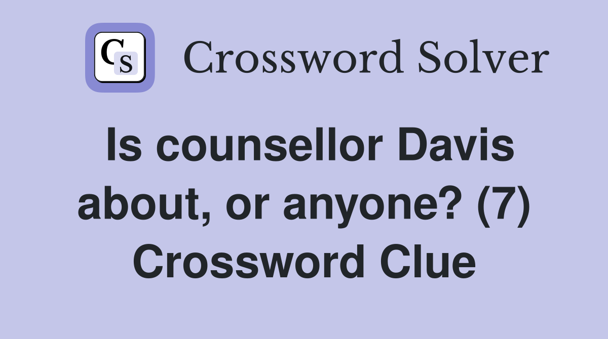 Is counsellor Davis about or anyone? (7) Crossword Clue Answers