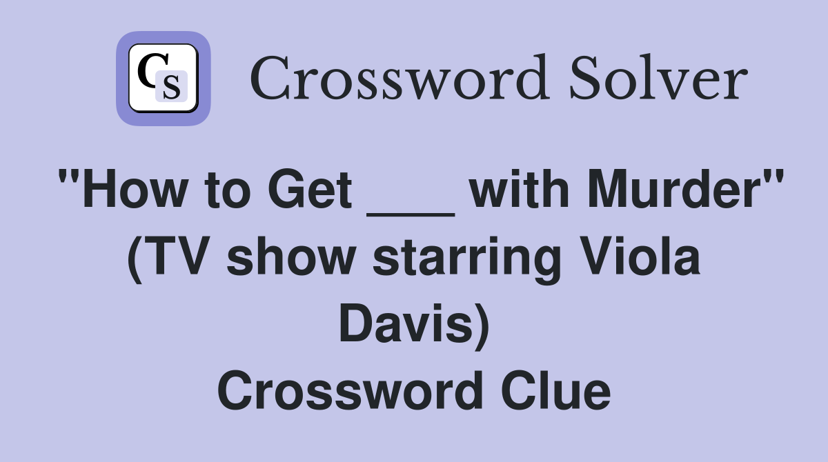 quot How to Get with Murder quot (TV show starring Viola Davis) Crossword