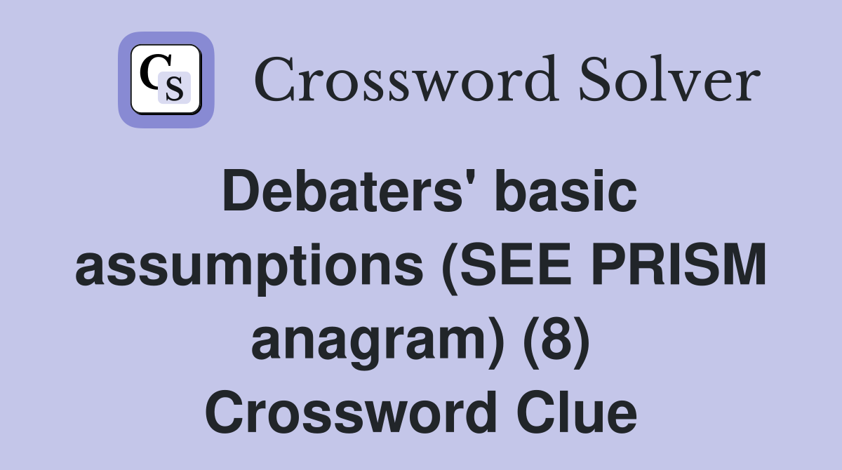 Debaters #39 basic assumptions (SEE PRISM anagram) (8) Crossword Clue