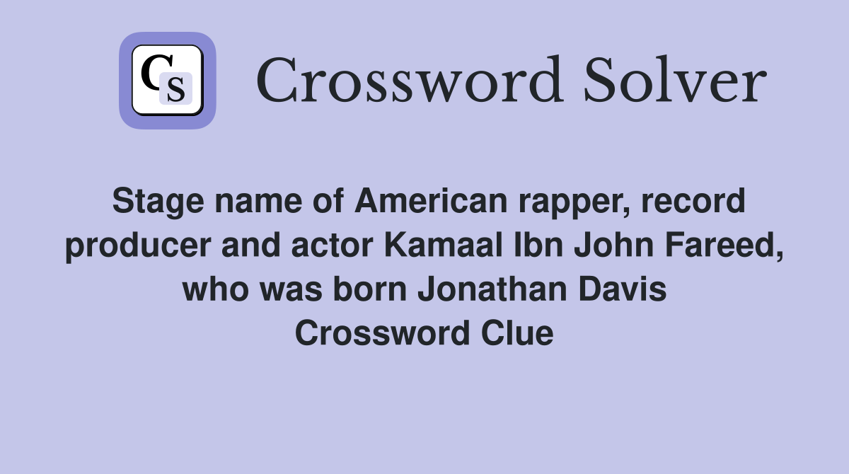 Stage name of American rapper record producer and actor Kamaal Ibn