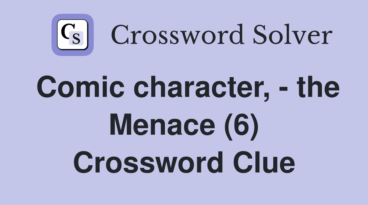 Comic character the Menace (6) Crossword Clue Answers Crossword