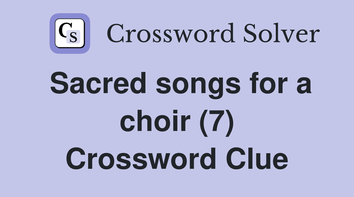 Sacred songs for a choir (7) Crossword Clue Answers Crossword Solver