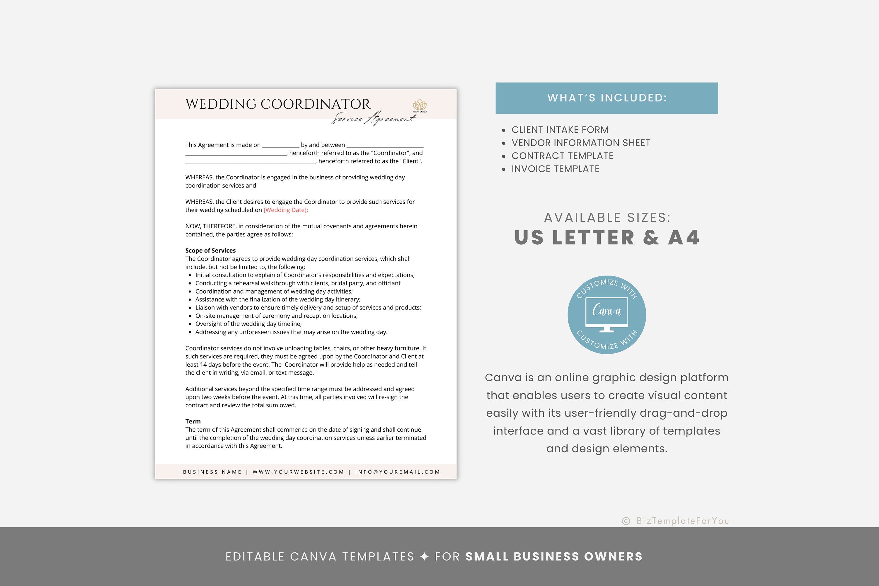 Wedding Coordinator Contract Template Invoice Welcome Letter Editable